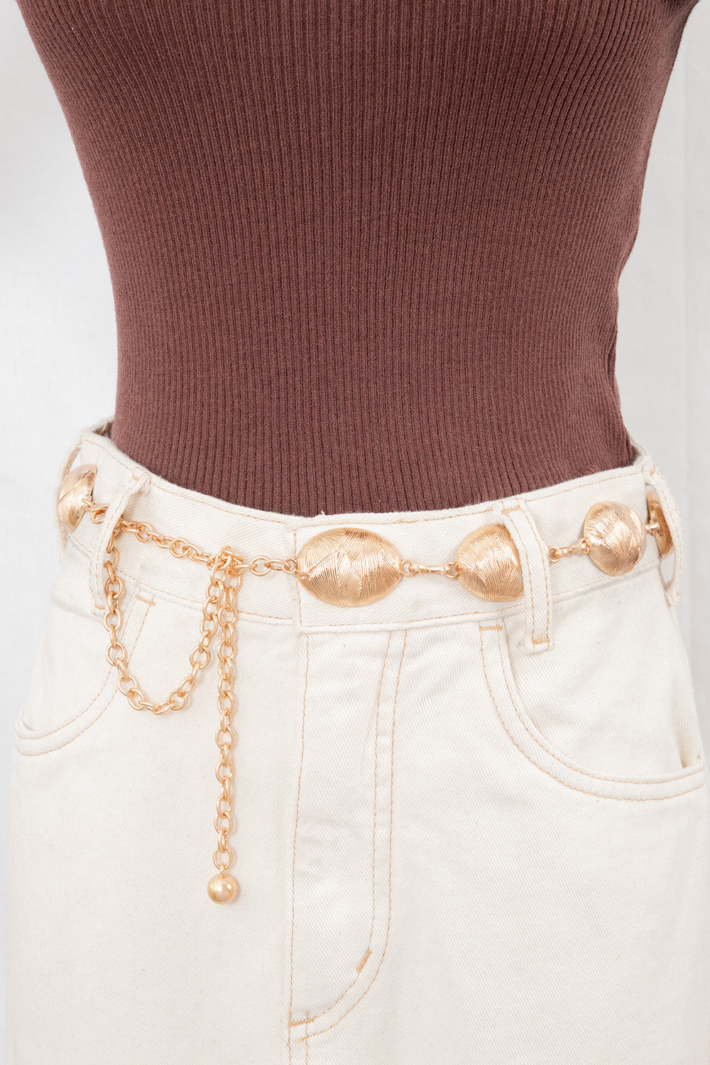 Elevate your style with this gold chain belt featuring delicate links and a refined shell-shaped detail that captures the essence of natural luxury. Crafted from high-quality metal, this adjustable chain belt offers a perfect fit and a polished finish, making it an essential accessory for dresses, skirts, or tailored trousers. A timeless piece that adds elegance and sophistication to any outfit.