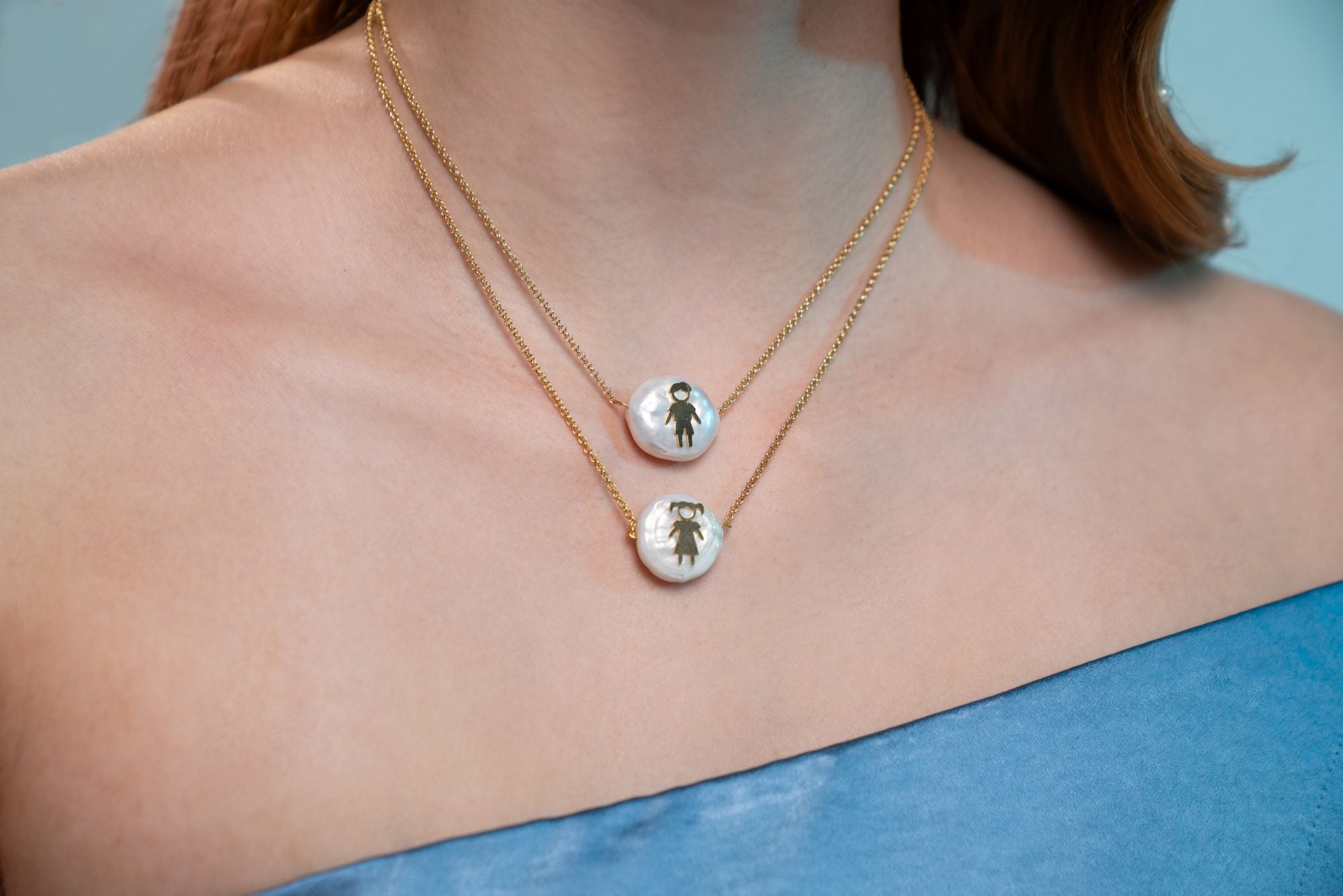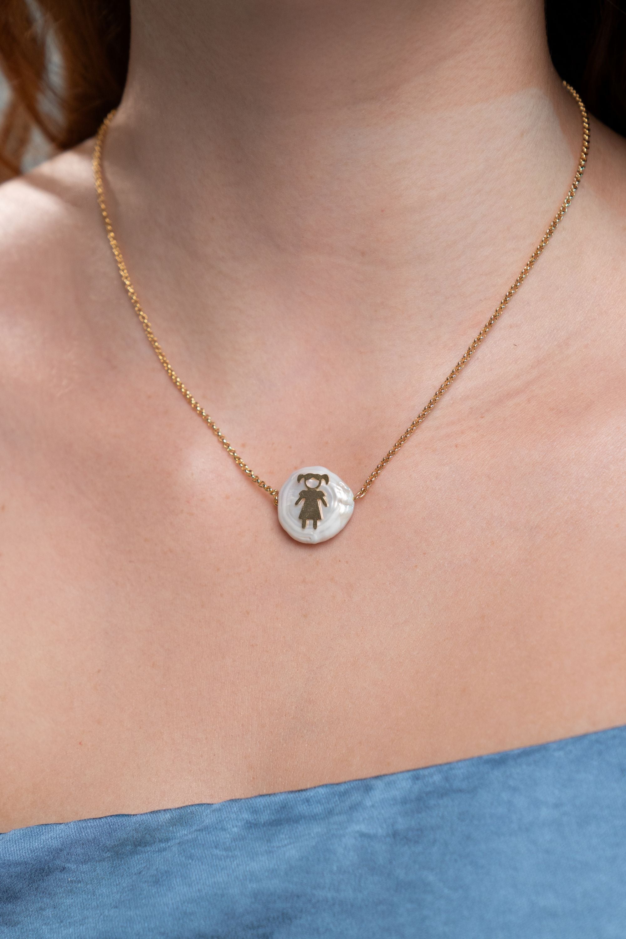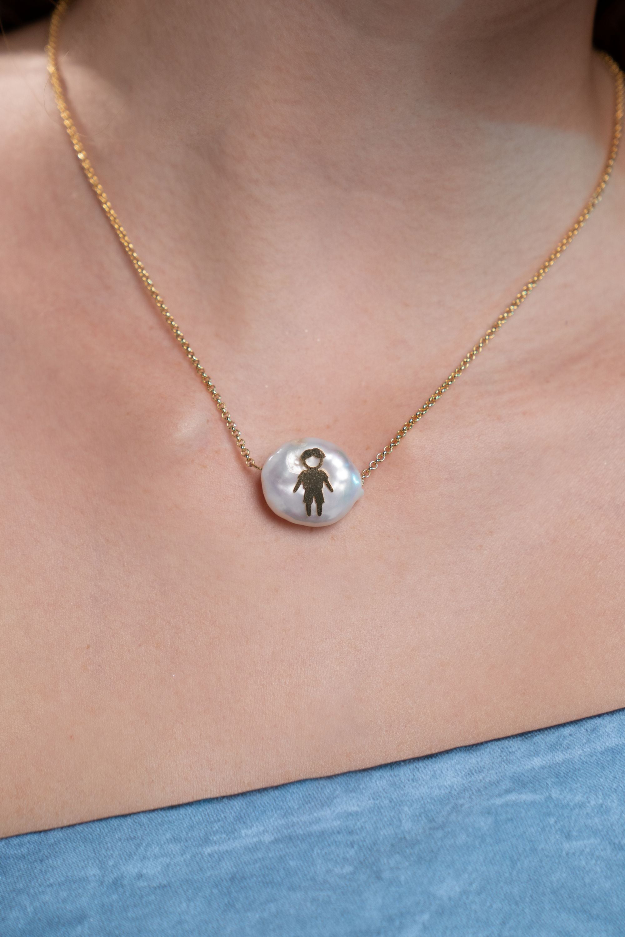 The Acqua necklace features a natural freshwater pearl and an adjustable chain, allowing you to customize the length for different looks. Delicate yet timeless, this piece is designed to elevate everyday outfits or complement special occasions. Available in three styles: smooth pearl, boy charm, and girl charm—each one adding a unique and meaningful touch.