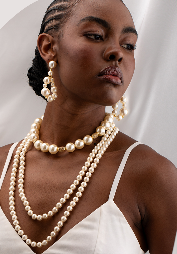 A handcrafted masterpiece featuring lustrous pearls and delicately studded details. This 18k gold–plated piece showcases Lita Raes’ exclusive design, uniting elegance and originality. Refined, timeless, and uniquely crafted, it’s the perfect statement accessory for any sophisticated look.
