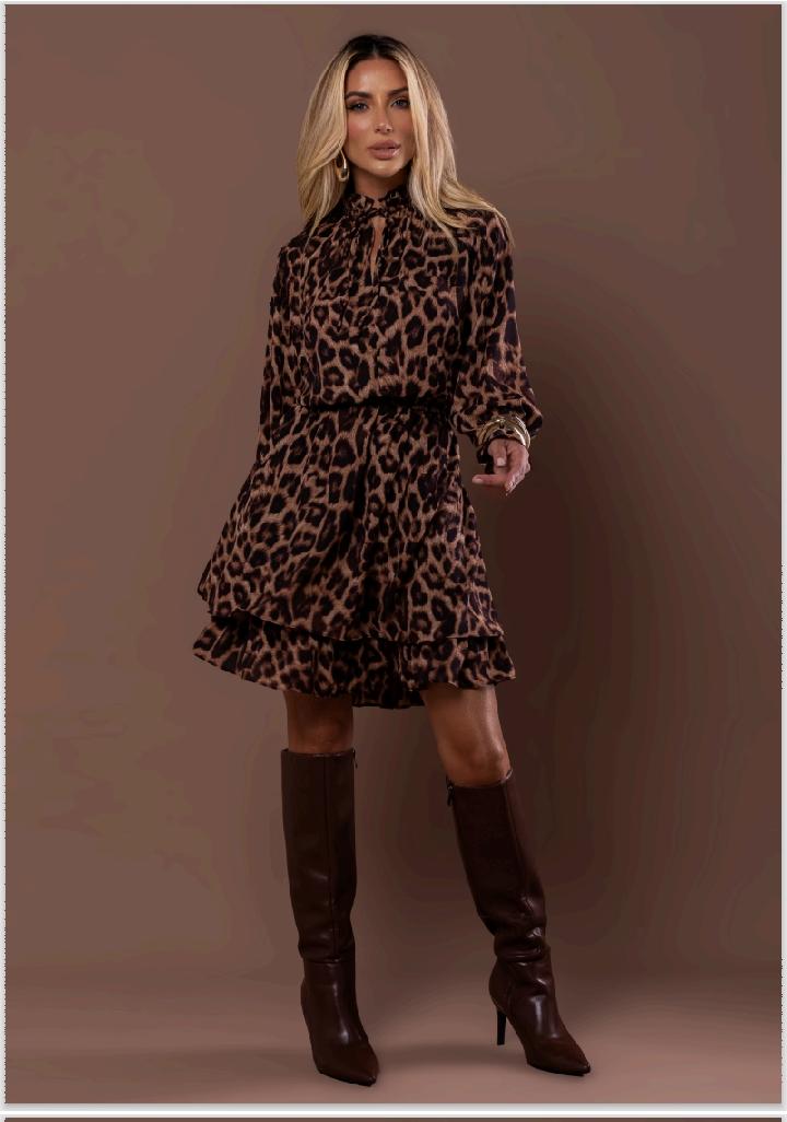 Make a bold statement with our Short Fluid Animal Print Dress, designed for a stylish and comfortable fit. This dress is fully lined for added comfort and features a vibrant animal print, perfect for showcasing your unique style.