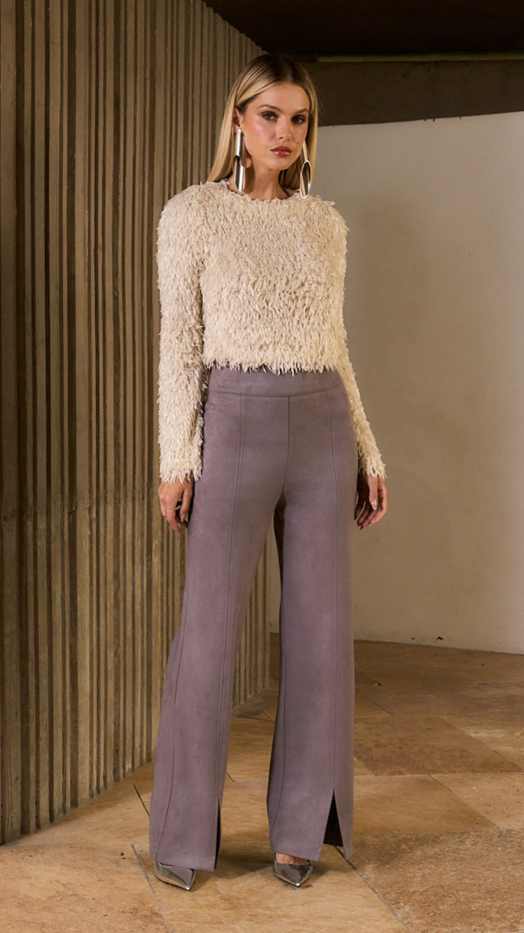 These velvet wide leg pants bring together elegance and modern style. Featuring a front slit detail, they elongate the silhouette while adding a touch of sophistication. The wide waistband ensures a flattering fit, and the side zipper closure offers practicality and comfort. Perfect for creating chic looks, from evening outfits to elevated casual wear, these pants are a must-have for women who value both style and versatility.