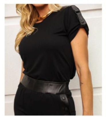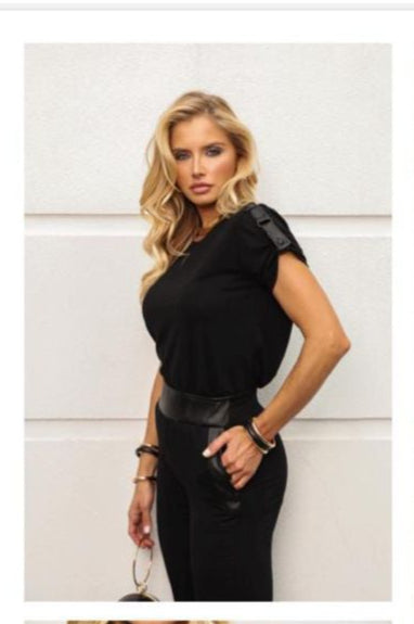 Viscose Set with Vegan Leather Details – T-Shirt and Jogger Pants
