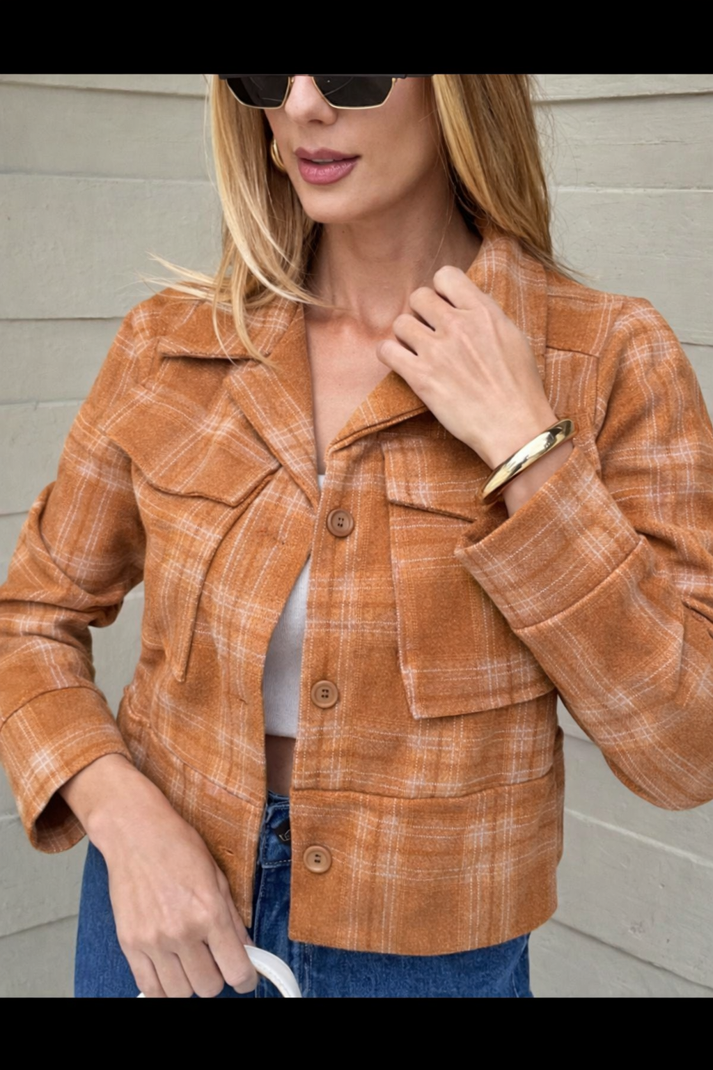 Short Check Jacket — Front Pockets & Tone-On-Tone Buttons