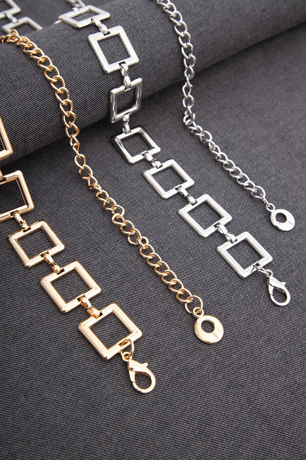 Elevate your style with this modern Brazilian chain belt featuring bold square-shaped links. A versatile accessory that adds a contemporary edge to dresses, skirts, pants, or even layered over blazers. Available in both silver and gold finishes, it’s the perfect statement piece to complete your look.