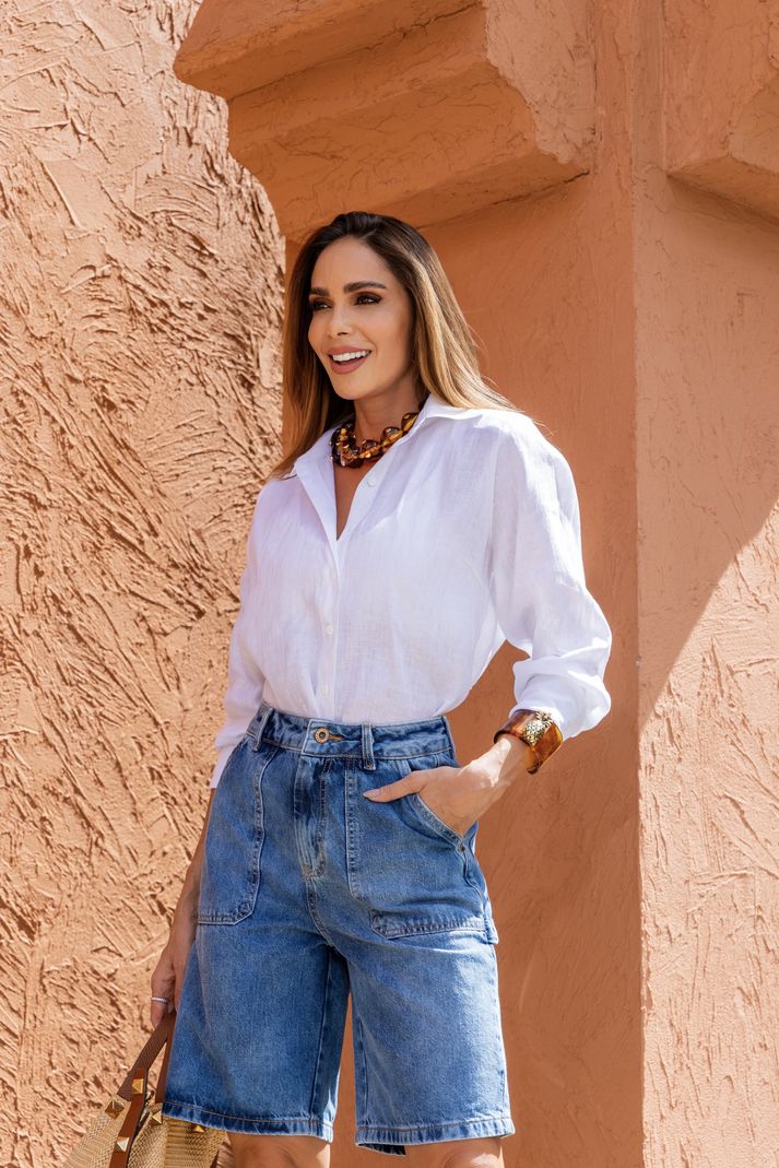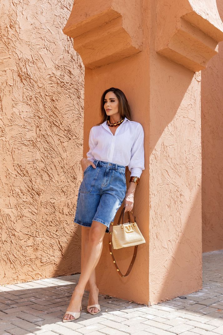 These Brazilian Bermuda shorts are crafted from premium denim with a flawless wash that adds a modern, lived-in charm. Designed with practical front pockets and a relaxed fit, they blend comfort and style effortlessly—your go-to piece for casual chic days.