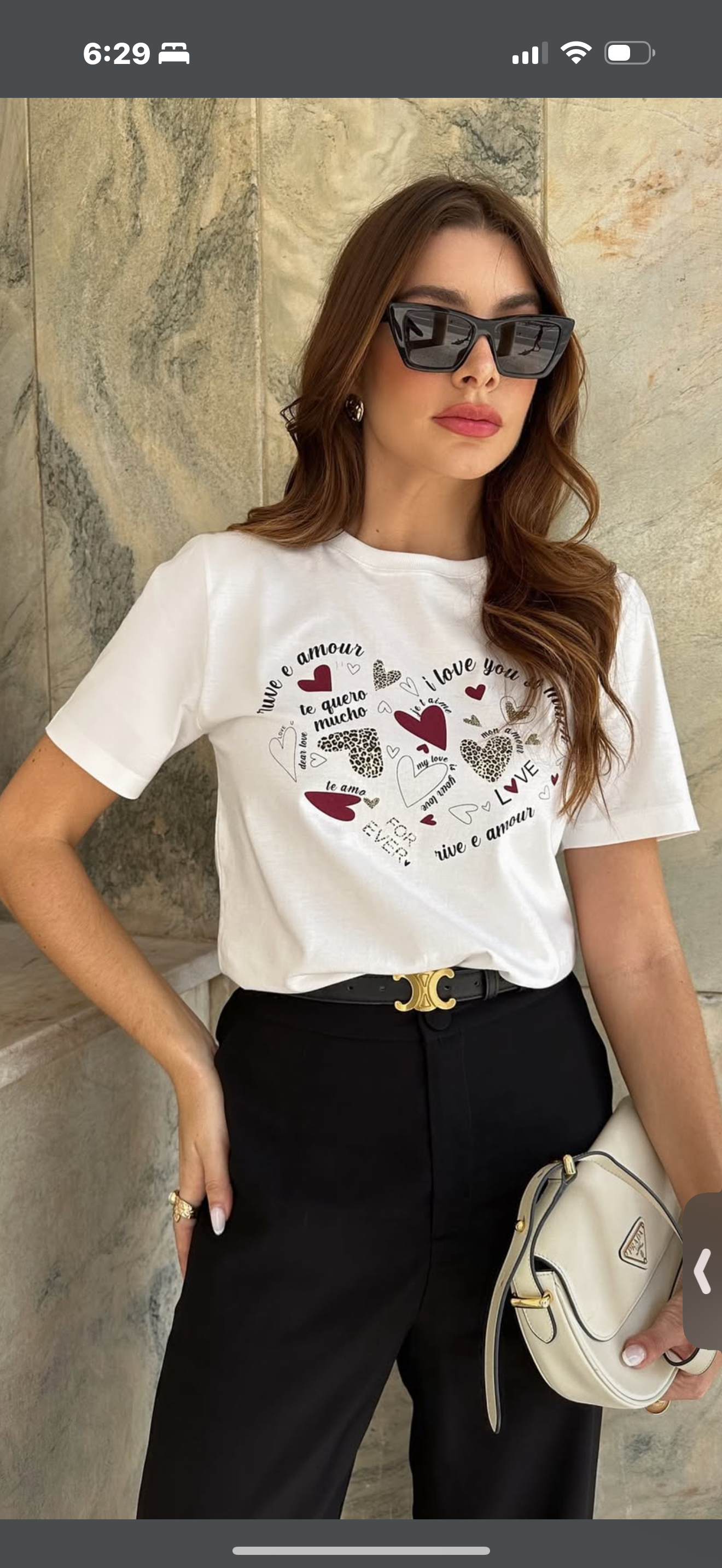 Crafted from 100% premium cotton, this Brazilian t-shirt brings softness and comfort to your everyday look. Featuring the phrase “Eu Te Amo” (“I love you” in Portuguese) in a standout print, it’s a heartfelt statement piece that adds meaning and style to your wardrobe. Perfect to wear on its own or layered for a laid-back, chic vibe.