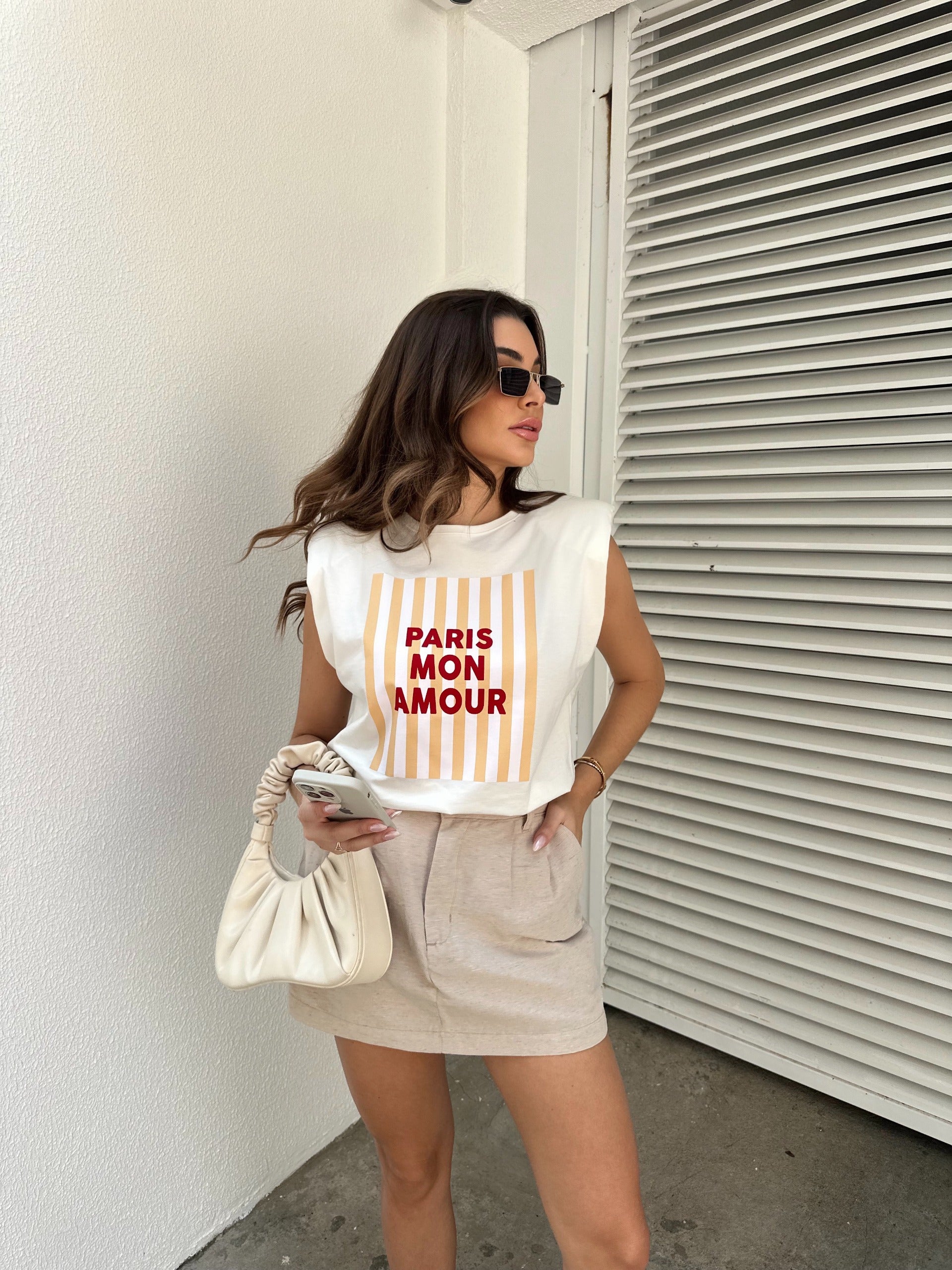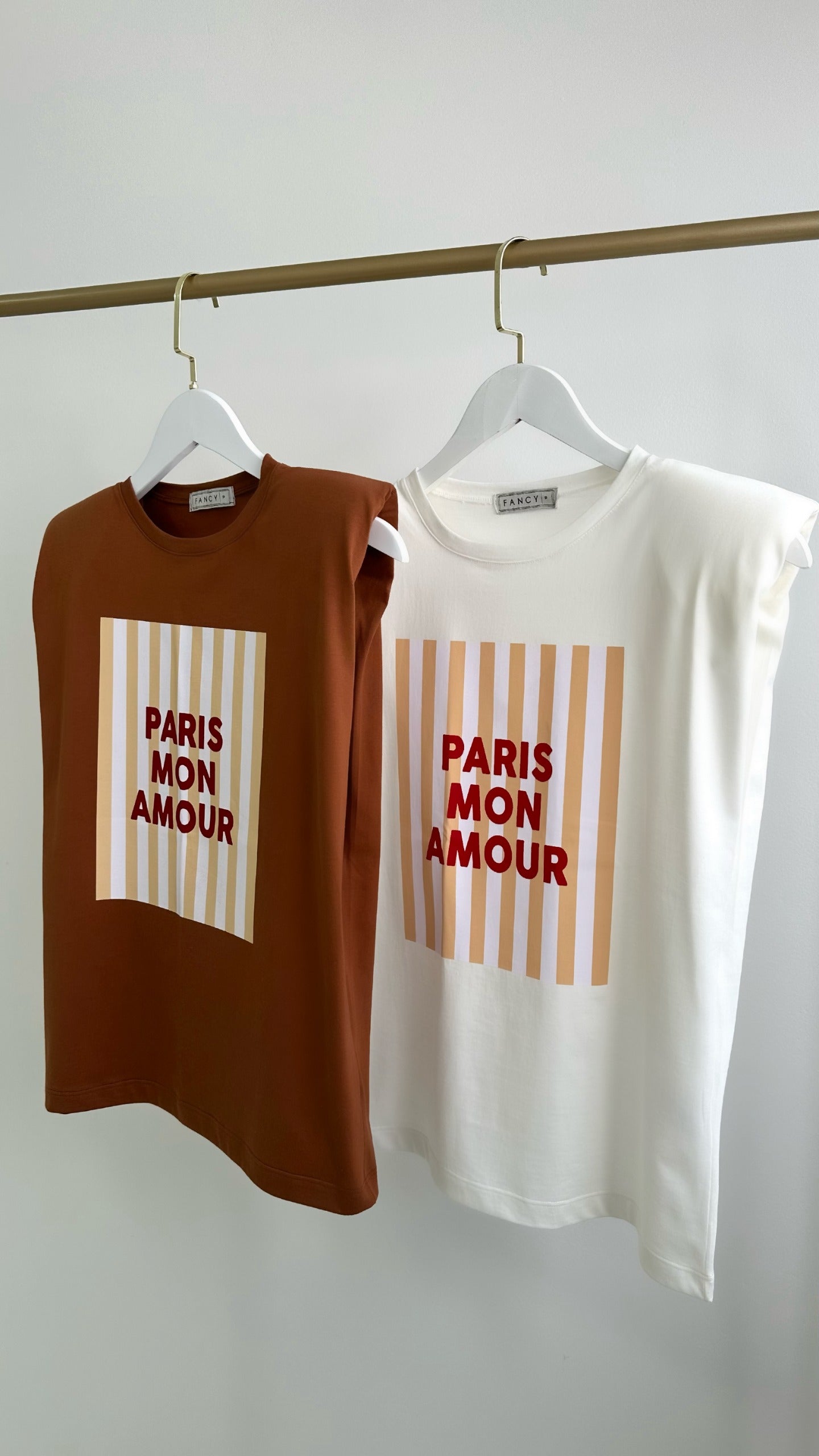 Effortlessly stylish, this Brazilian muscle-cut t-shirt features structured shoulder pads and a chic “Paris” print. Made for bold, fashion-forward looks, it adds a touch of sophistication and edge to any outfit—perfect for dressing up your casual wardrobe.