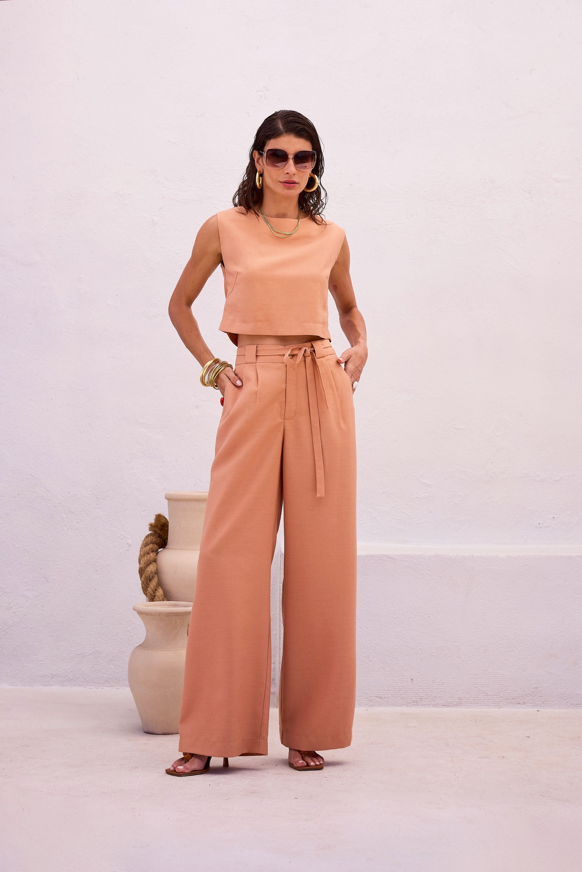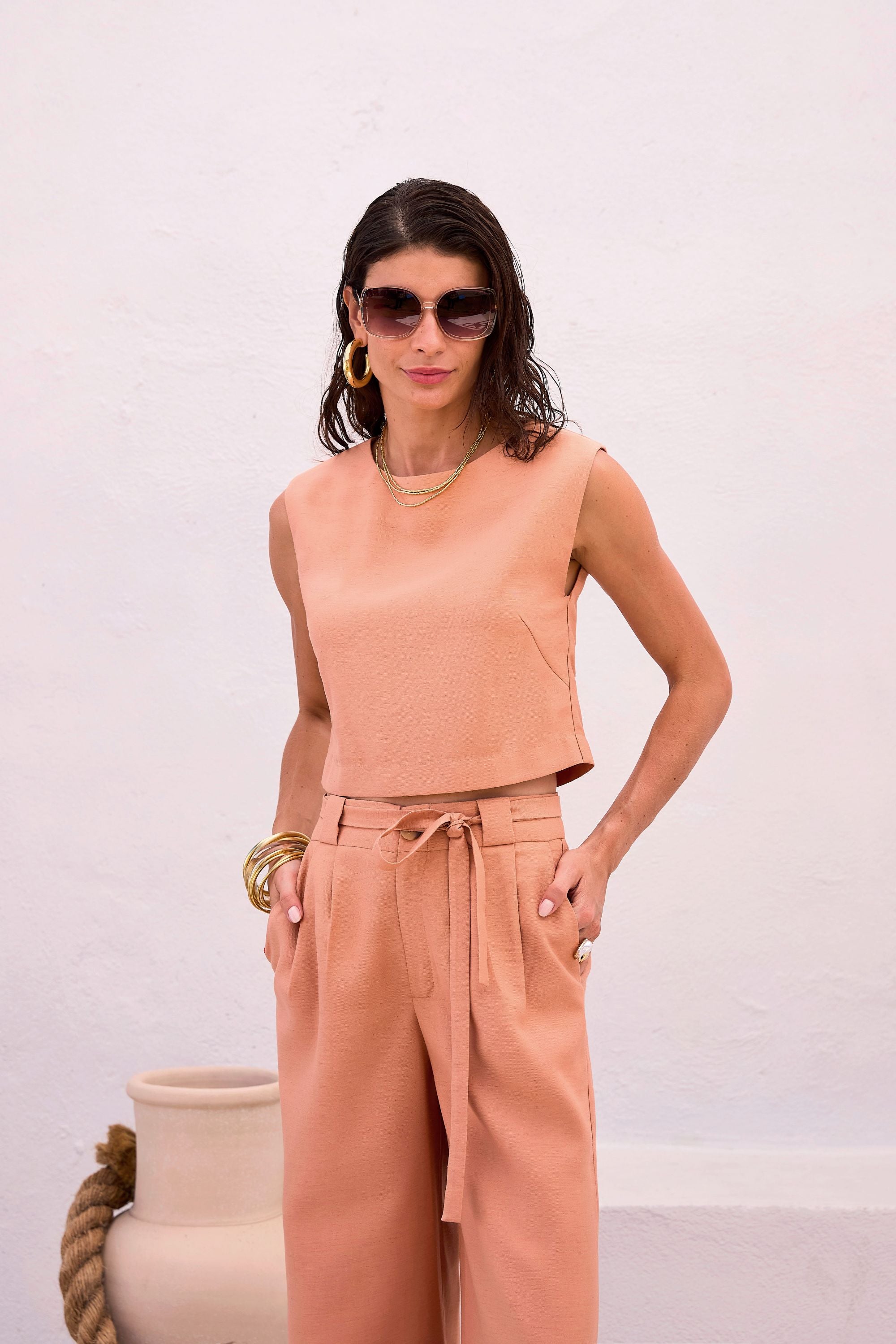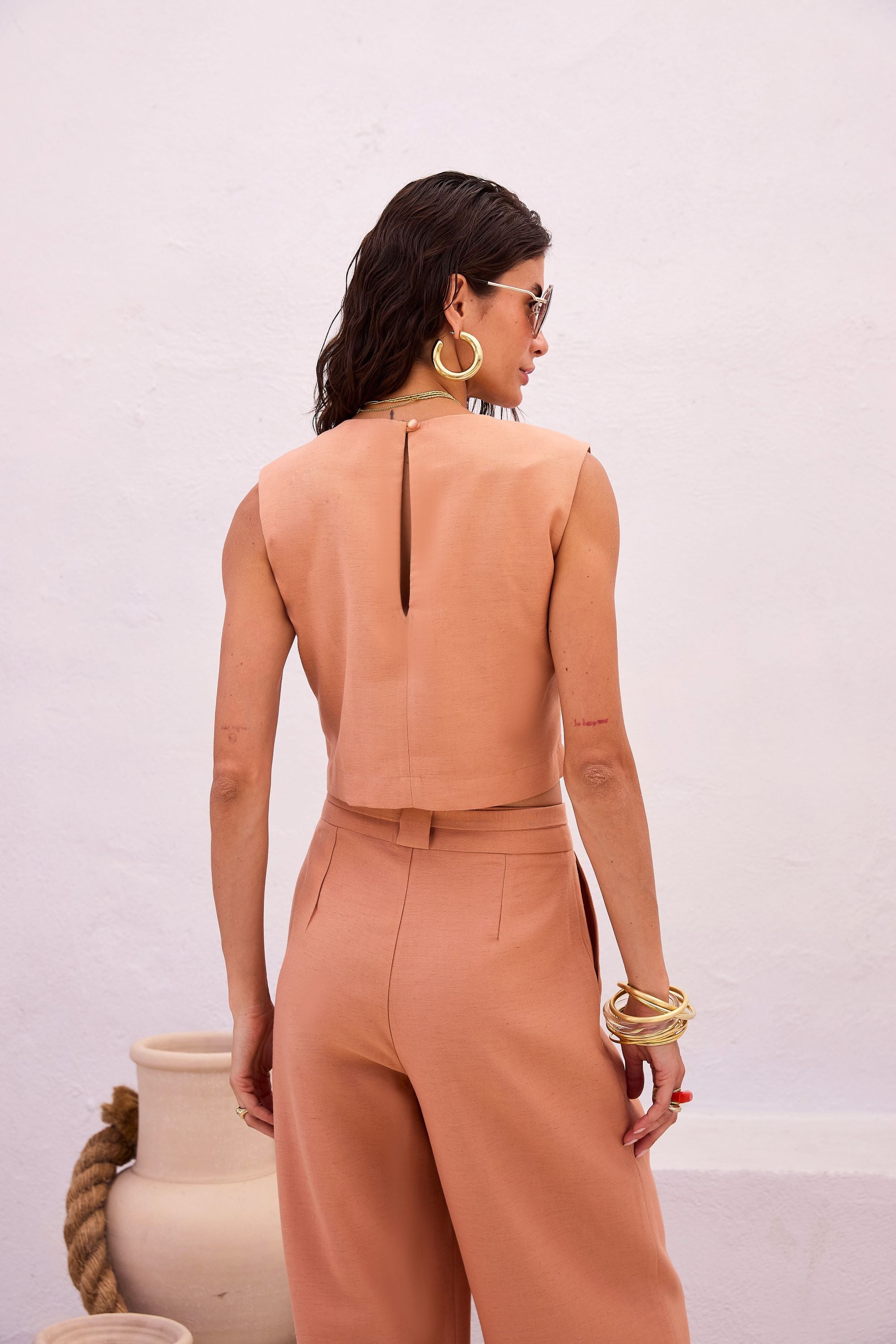 Viscose Woven Top and Pants Set with Unique Cut-Outs and Buttons